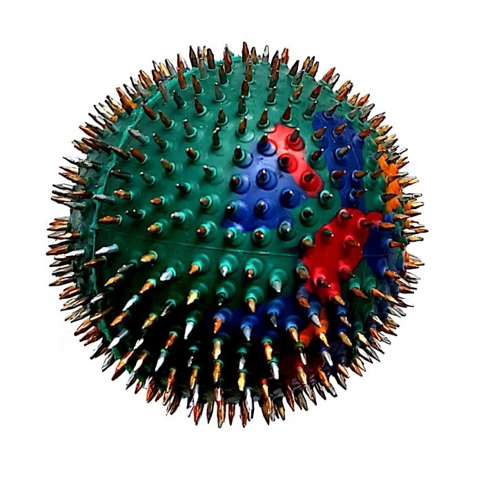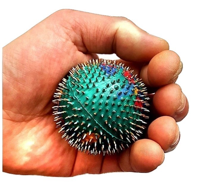 Шар из резины медицинского назначения диаметром 55 мм с зафиксированными на нем иглами из четырех металлов (меди, железа, серебра, цинка)
