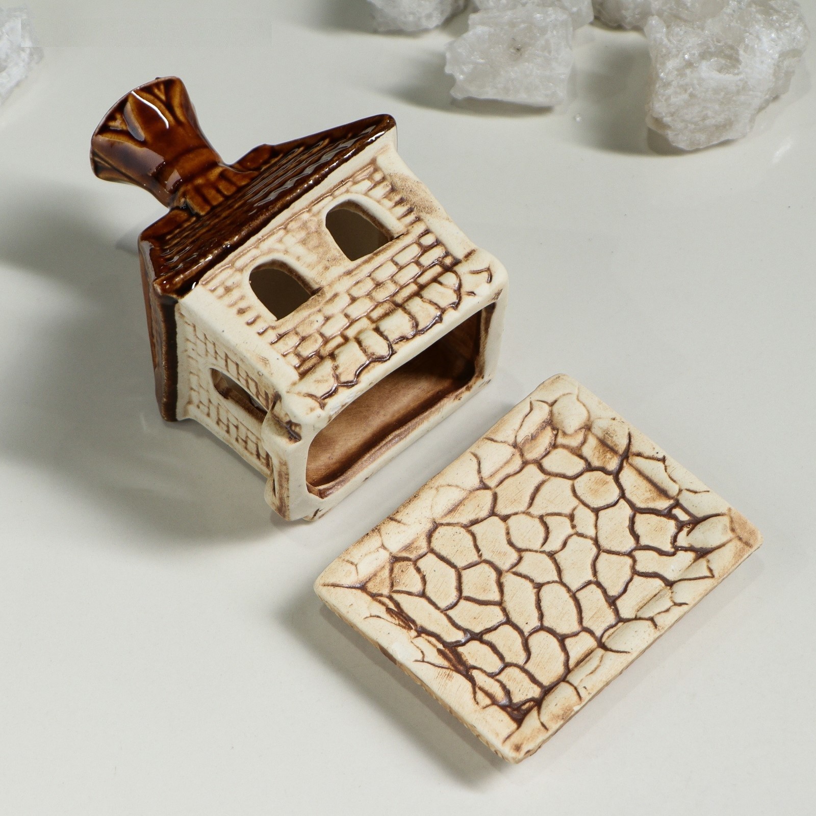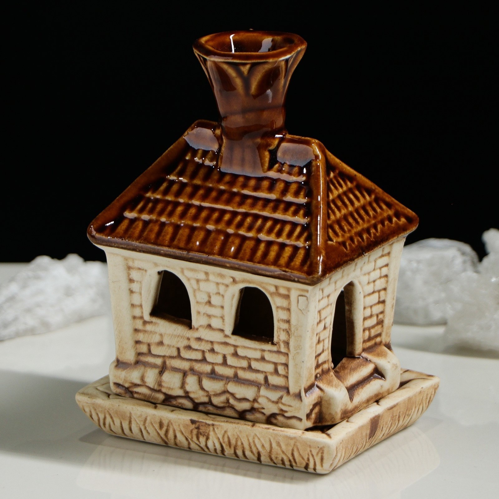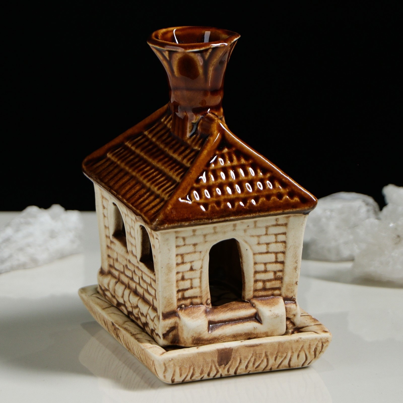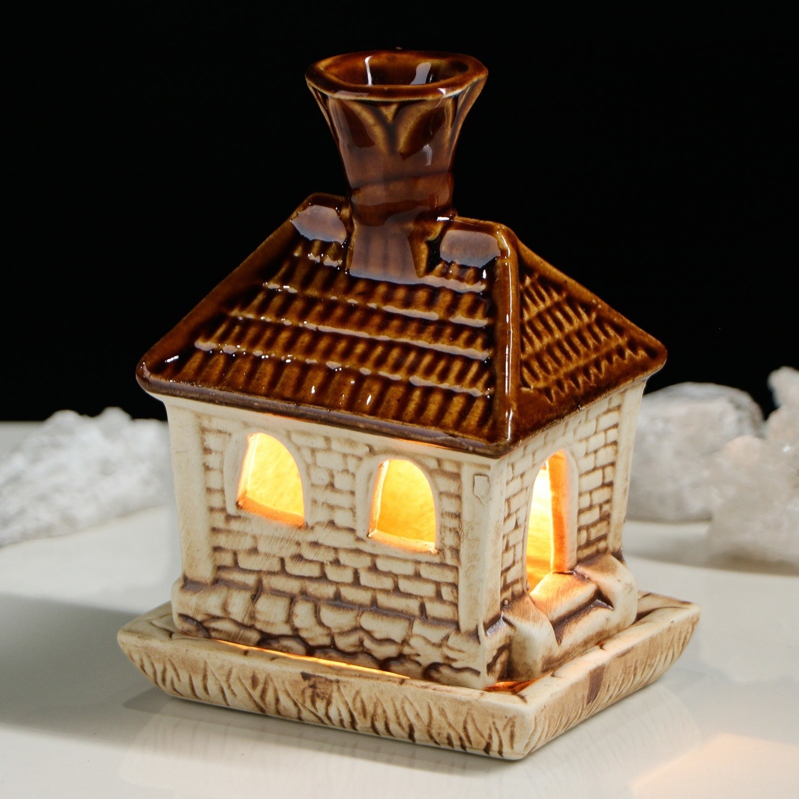 Аромалампа "Домик" коричнево-бежевая станет источником вдохновения для любой хозяйки. Миниатюрный сувенир создаст атмосферу комфорта и гостеприимства.