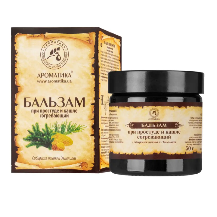 Бальзам косметический при простуде и кашле согревающий «Сибирская пихта и Эвкалипт» Ароматика – эффективное и удобное средство с ароматерапевтическим эффектом предназначено для растираний и ингаляций при простудных заболеваниях. Бальзам обладает ярко выраженным согревающим, бактерицидным, противокашлевым свойствами. Он облегчает симптомы ОРВИ и гриппа, снимает воспаления верхних дыхательных путей, смягчает непродуктивный кашель, помогает устранять кашель и заложенность носа.