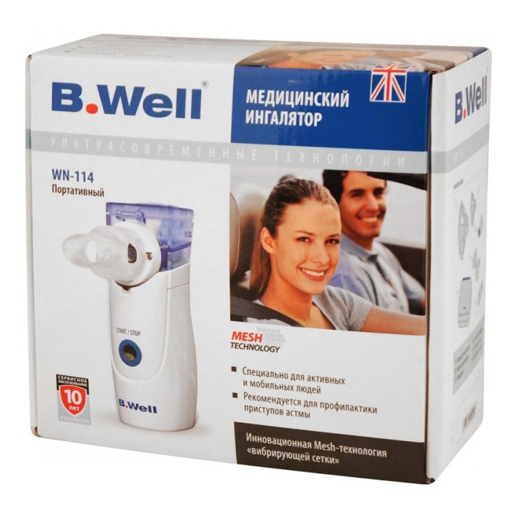 Что такое Mesh? Mesh-технология распыления это «просеивание» частиц лекарства через сетку-мембрану. Ингалятор модели B.WELL WN-114 создает особенно мелкодисперсную жидкую пыль при помощи специальной сетки-мембраны. Эта современная технология гораздо более эффективна, так как ультразвуковые волны не действуют на лекарство и не разрушают его структуру. Ингалятор удобен для переноски и укомплектован специальным чехлом.