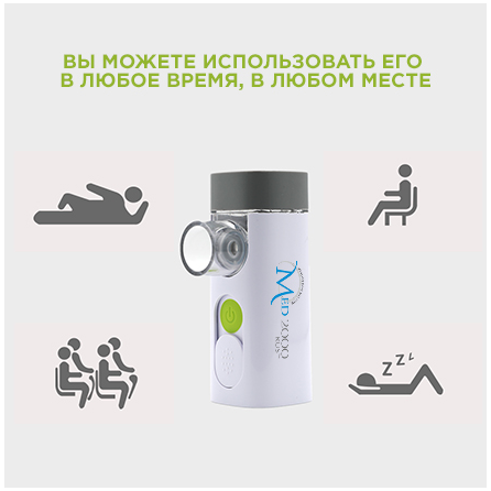 - Закрытый тип камеры с защитой от проливания препарата позволит делать ингаляцию лежа, в том числе во сне. Это особенно важно в случае проведения ингаляций лежачим больным или детям.