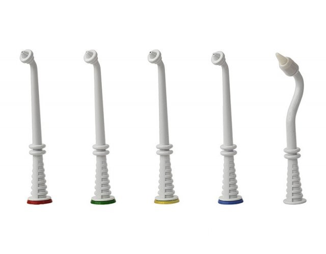 - Насадки - 5 шт (4 насадок с разноцветными кольцами и 1 специальная насадка с гибким распылителем для чистки и гигиены труднодоступных мест);