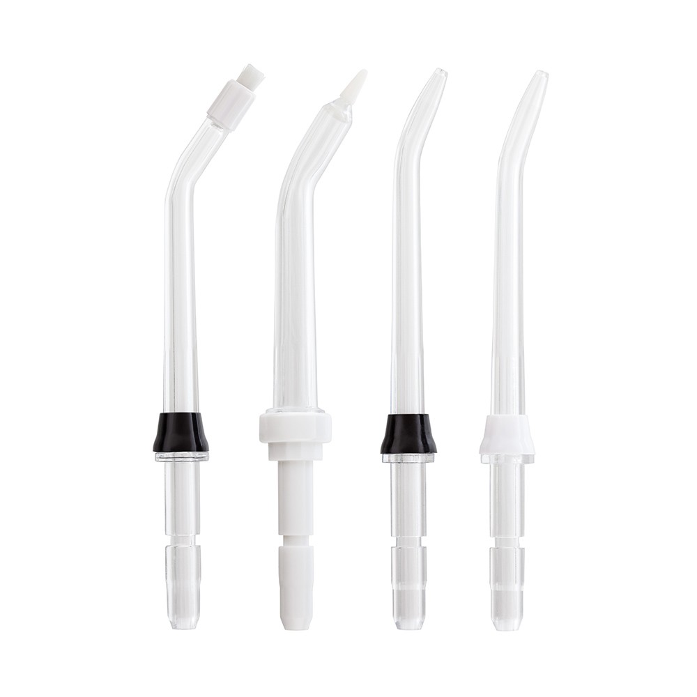 - насадки для ирригатора - 4 шт (стандартные-2 шт., ортодонтальная-1 шт., для брекетов, пародонтальная-1 шт., с мягким наконечником для чувствительных десен)