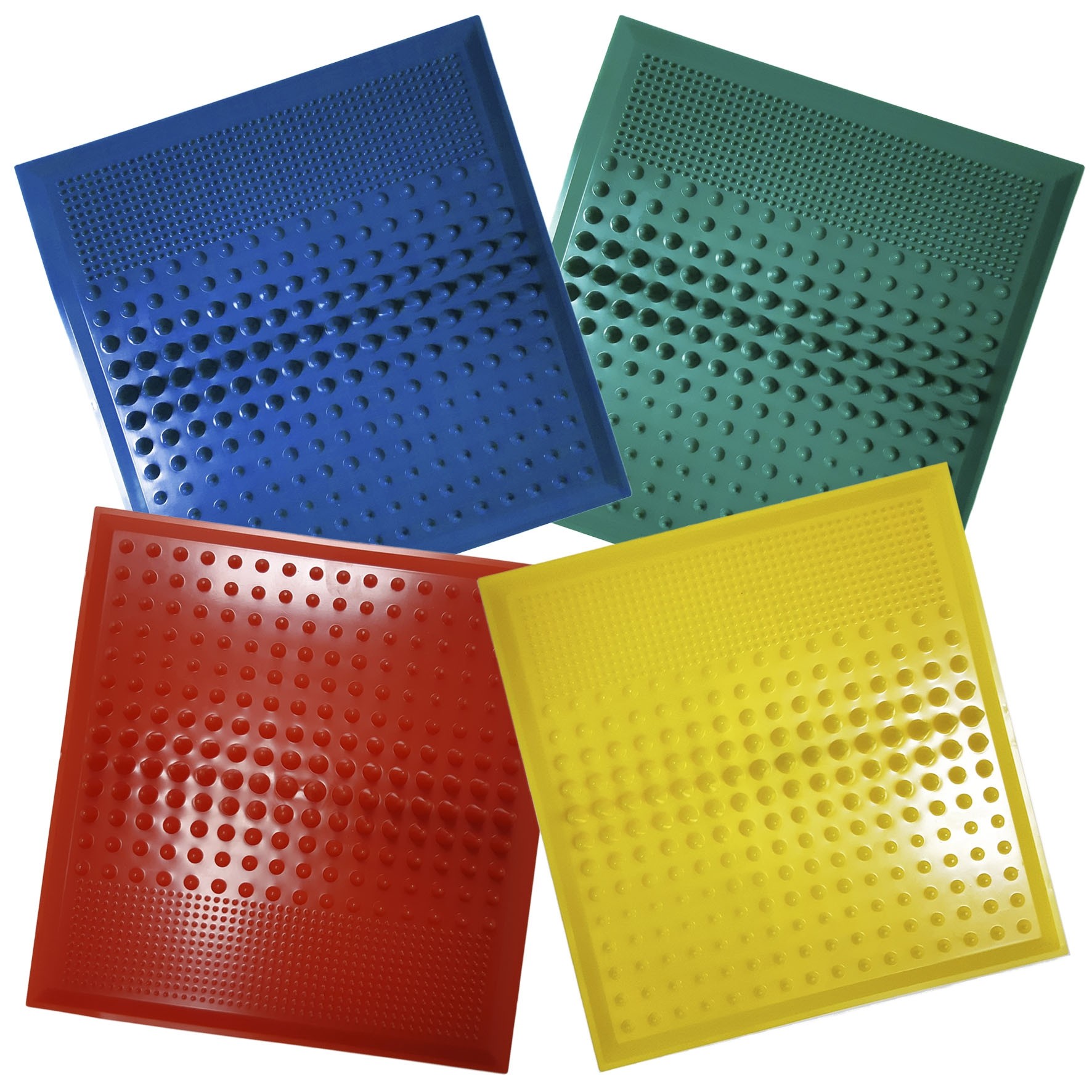 При хождении по массажным коврикам достигается эффект глубокого приятного точечного массажа стоп.