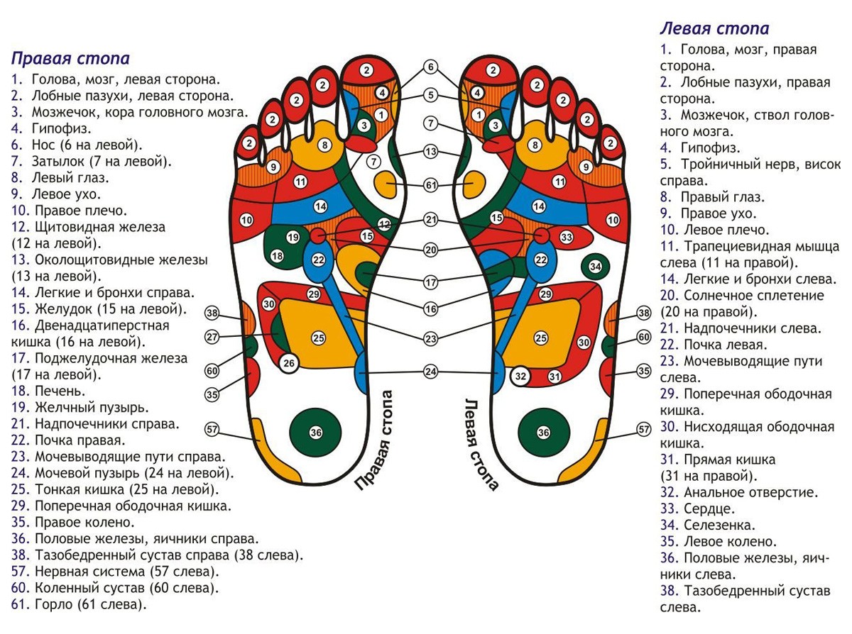 На ступнях человека расположены рефлекторные зоны, которые взаимосвязаны с определенными внутренними органами. Массаж этих зон оказывает лечебное воздействие на соответствующие органы человека Укрепляет иммунную систему и способствует оздоровлению всего организма
