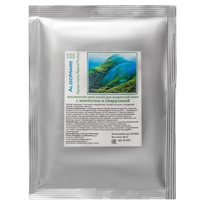Маска альгинатная с Ментолом и Спирулиной, 30 гр.