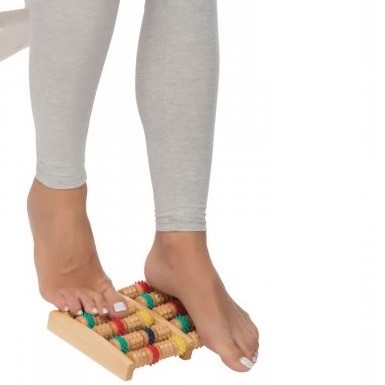 Для массажа стоп сядьте на стул, положите босые ноги на ролики, передвигайте ноги вперед-назад, массаж производится за счет вращения массажных роликов.
