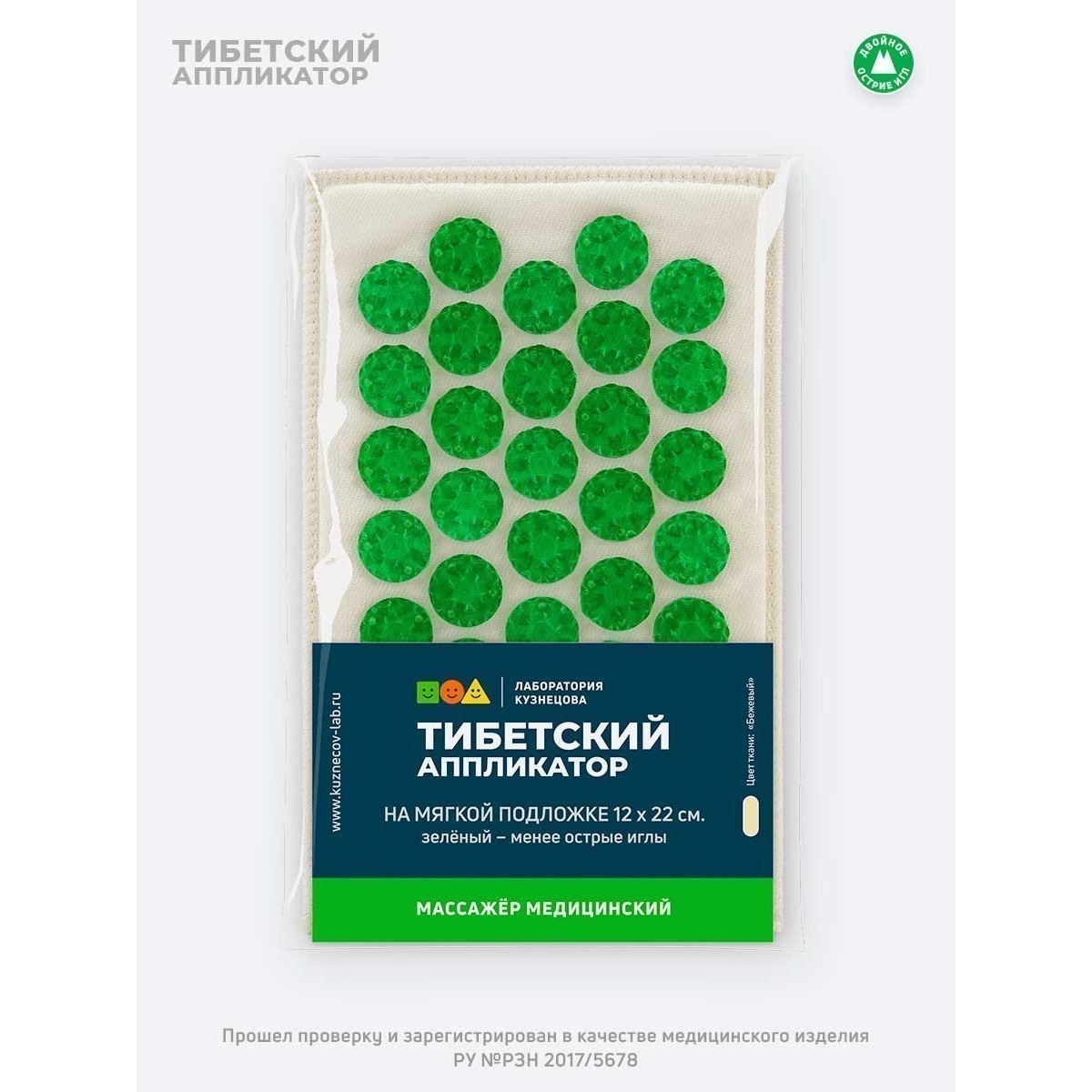 Тибетский аппликатор (современный аппликатор Кузнецова) на мягкой подложке 12 х 22 см – это небольшой акупунктурный игольчатый медицинский массажер, который удобно прижимать руками к различным частям тела (голове, суставам, рукам, ногам и т.д.). На нем также можно лежать, однако, если лежать на аппликаторе большего размера (41x60 см), то эффект будет выражен значительно сильнее.