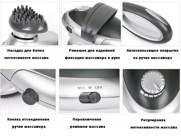 В зависимости от насадки, массажер глубоко воздействует на подкожно-жировую прослойку, восстанавливает обмен веществ, способствует выводу жидкости, улучшает расщепление жировой ткани либо деликатно расслабляет тело, снимает спазм мышц и устраняет болевые симптомы.