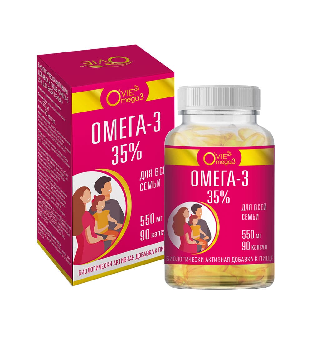 O`vie Омега-3 35% для всей семьи – рекомендуется в качестве дополнительного источника полиненасыщенных жирных кислот Омега-3, в том числе эйкозапентаеновой и докозагексаеновой кислот.