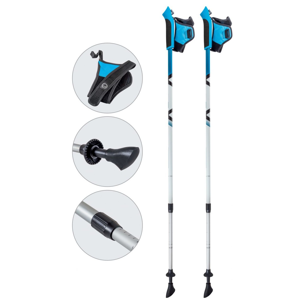 Практичные и надёжные телескопические палки для скандинавской ходьбы позволяют тренировать верхнюю и нижнюю группу мышц, избегая нагрузок на позвоночник. Палки созданы из лёгкого, износостойкого алюминия, что существенно облегчает конструкцию при этом не лишая прочности. Большим преимуществом является возможность регулировать размер палок в зависимости от роста cо 135 до 200 см.
