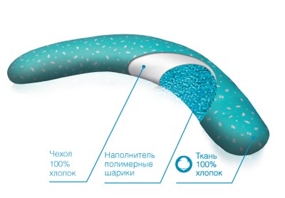 Наполнитель подушки позволяет изменять толщину отдельных частей подушки и удобно размещать на подушке ребенка или размещаться женщине.