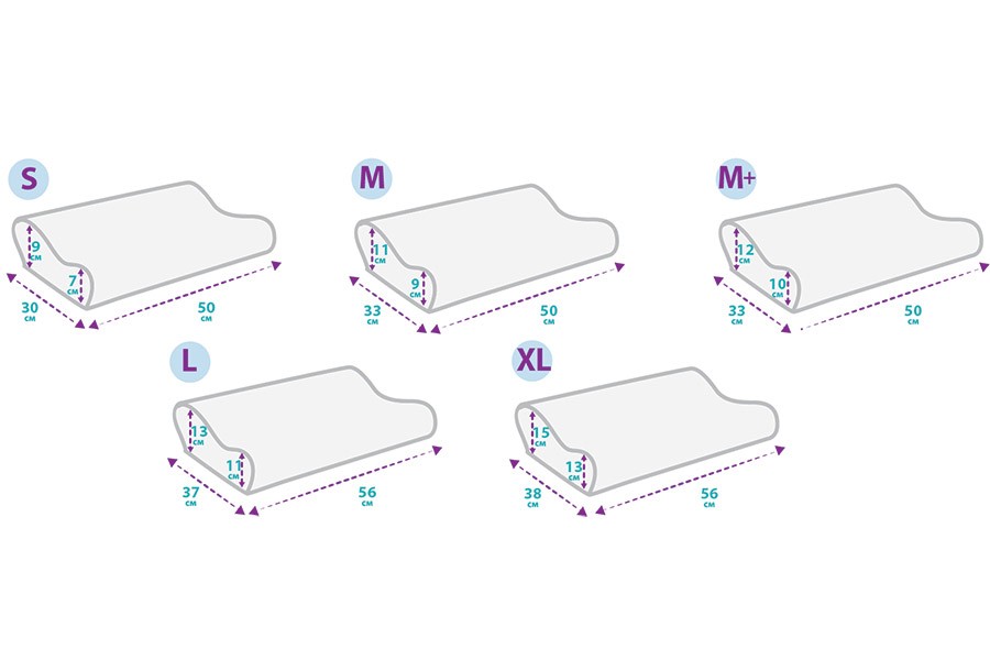 - Размеры подушки: M, M+, L, XL