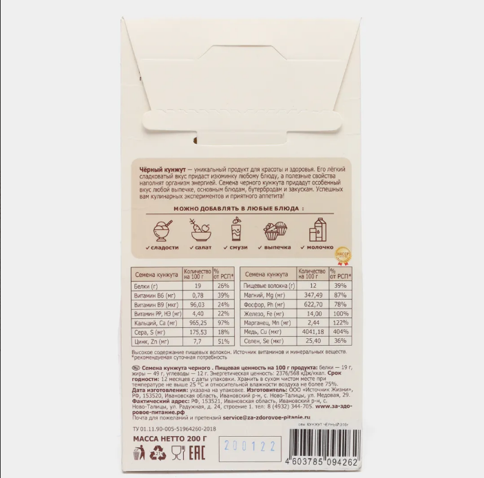рекордсмен по содержанию кальция. Он имеет уникальный сладковатый вкус и очень ценится в кулинарии. Семена кунжута — универсальная приправа к супам, выпечке, салатам и кашам.