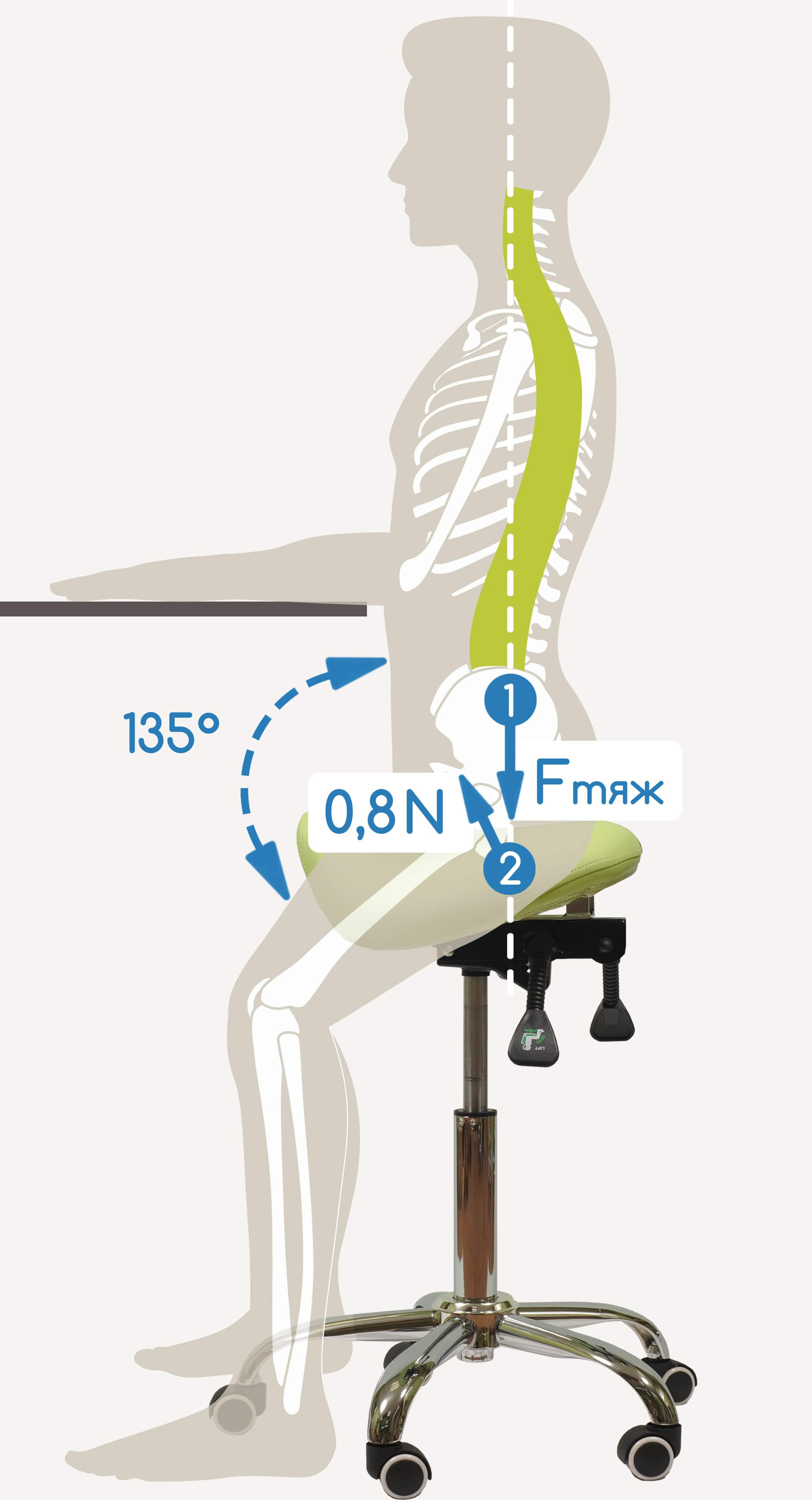 - Благодаря наклону сила реакции опоры (0,8N) в тазу уменьшается на 20%.