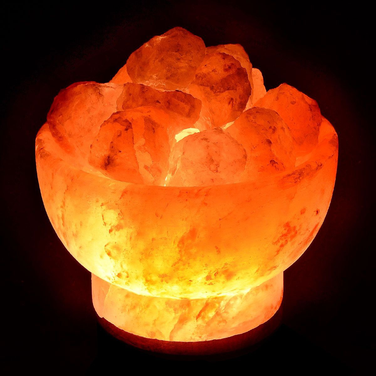 Солевая лампа «Ваза с камнями в соляной чаше» это удивительный коктейль классической солевой лампы и эффекта Огненной Чаши. В качестве корпуса лампы используется специально обработанная каменная соль. В качестве наполнения также используются куски природной каменной соли.