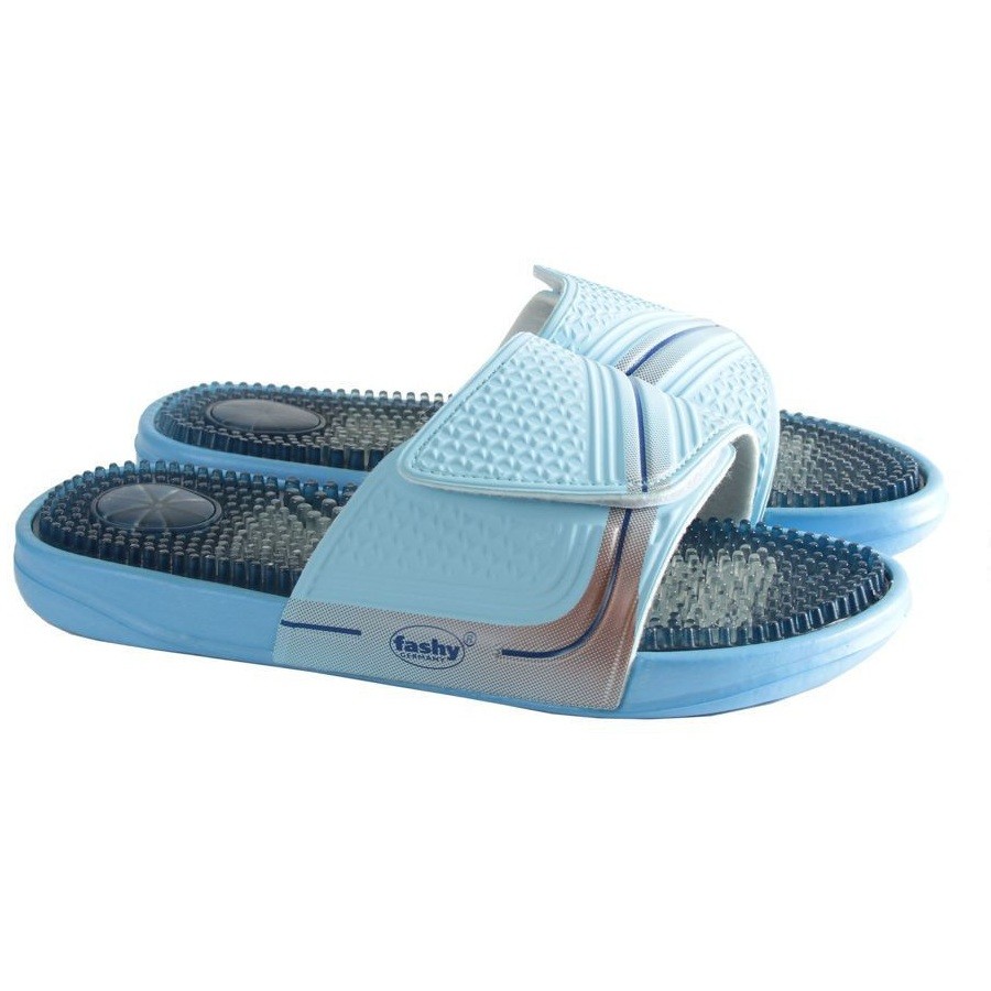 Удобные и внешне привлекательные массажные тапочки Fashy Massage Sandal изготовлены немецкой компанией FASHY – известным производителем товаров для спорта и отдыха на воде. Их основное предназначение – воздействие на рефлекторные зоны стоп для улучшения здоровья и снятия усталости с ног.