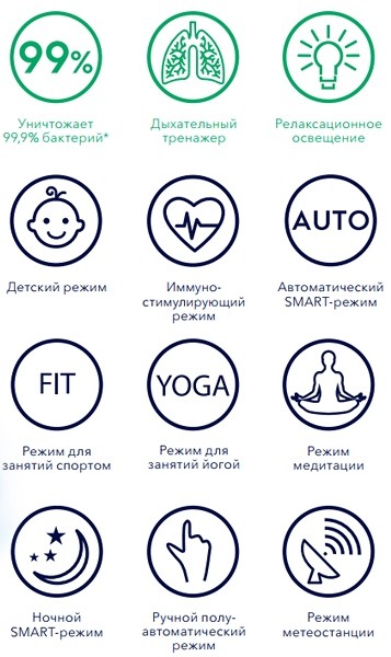 - Ультрафиолетовая лампа Ultraviolet Pro с длинной волны 254Нм стерилизует поступающий в прибор воздух, уничтожая болезнетворные вирусы и бактерии;