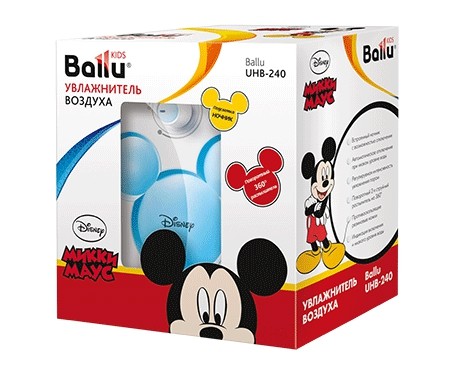 Совместно с художниками и дизайнерами Disney была создана модель Ballu UHB-240, которая сочетает в себе функцию увлажнителя и светильника – ночника.