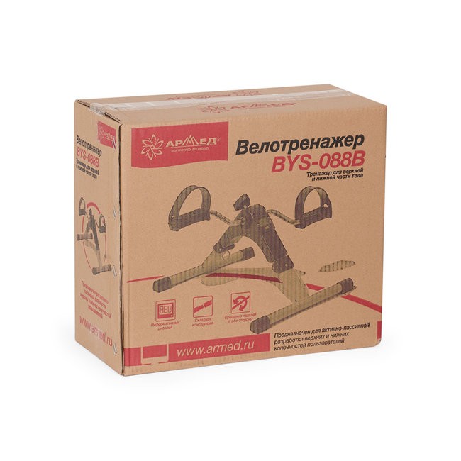 Корпус велотренажера Армед BYS-088B изготовлен из высокопрочной стали, способной без повреждений выдержать нагрузку до 100 кг. Даже в условиях частого применения материал не изменяет первоначальные эксплуатационные качества. Благодаря складной конструкции модель удобно хранить и перевозить в багажнике автомобиля. Пластиковые упоры предотвращают возникновение вмятин, царапин и других повреждений напольного покрытия в процессе эксплуатации тренажера. Регулярное выполнение упражнений с помощью модели поможет пользователю восстановить нормальное кровообращение, а также снизить боль.