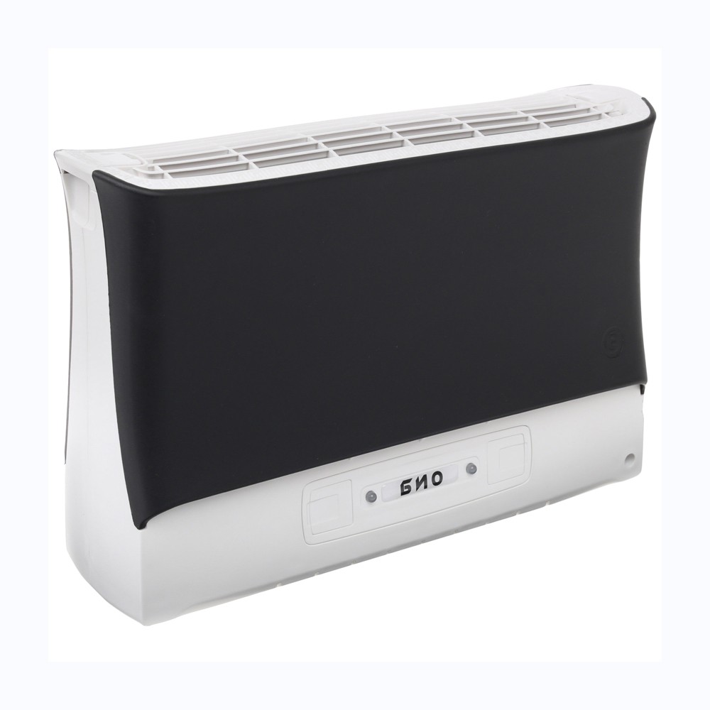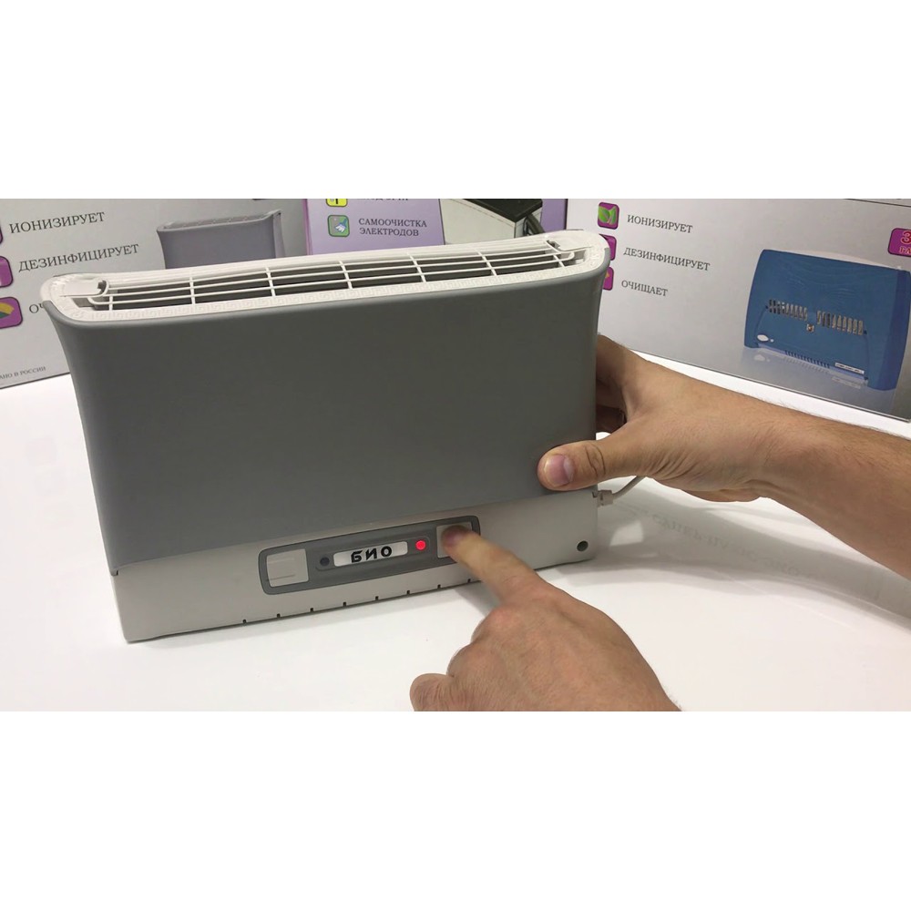 Очиститель воздуха Супер Плюс Био черный - работает по принципу "ионного ветра", который возникает в результате коронного разряда и обеспечивает движение потока воздуха через кассету прибора, при этом частицы аэрозоля (пыль, дым, микроорганизмы), загрязняющие воздух, всасываются вместе с воздухом в кассету приобретая электрический заряд и под действием электростатического поля прилипают к осадительным пластинам, расположенным внутри кассеты.