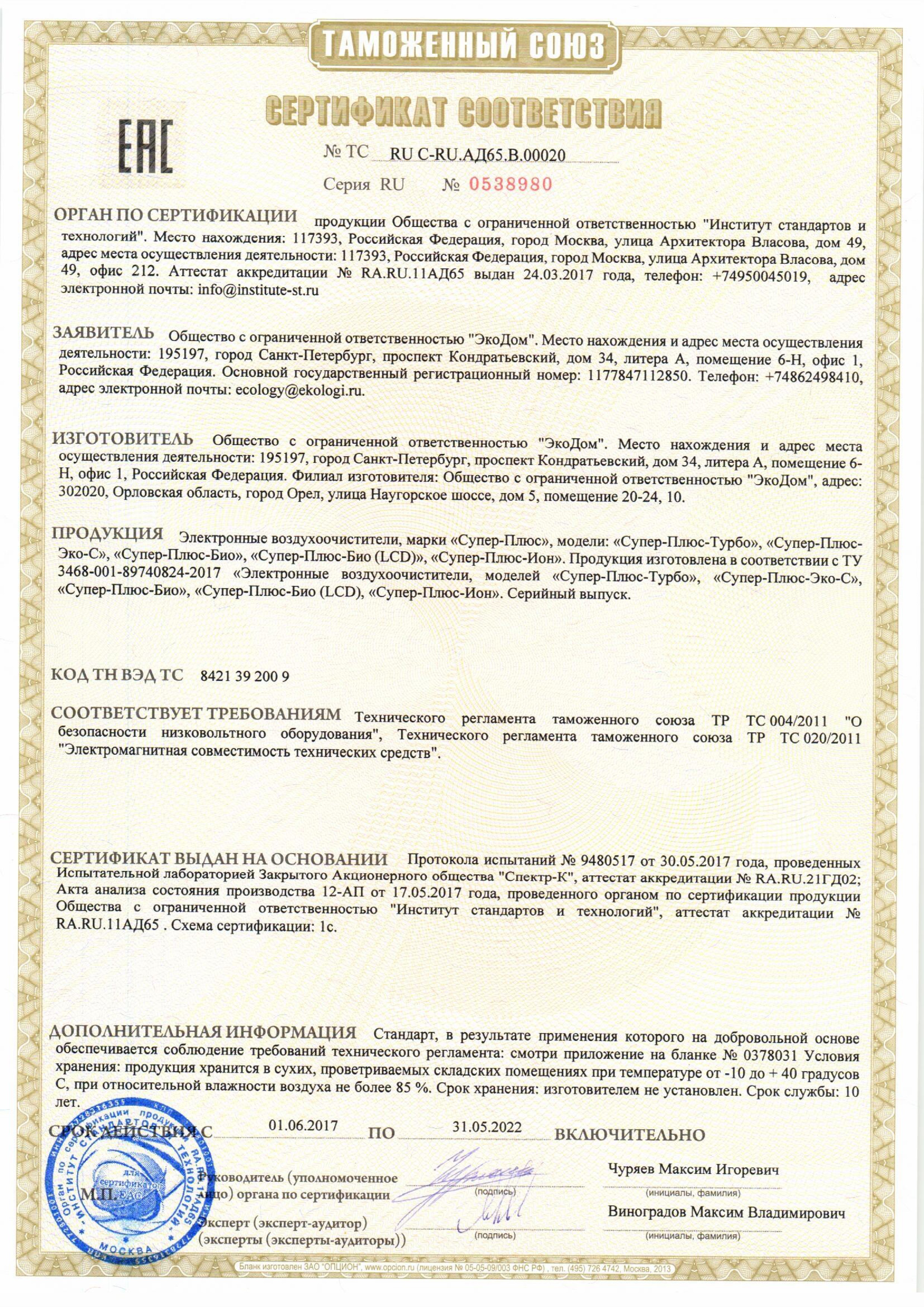 Воздухоочиститель электронный СУПЕР-ПЛЮС-БИО