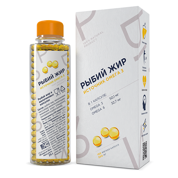 Рыбий жир высокой очистки – это пищевая добавка, вырабатываемая из морской рыбы. Высококачественный рыбий жир произведен из дорогого сырья: печень трески из Исландии. Добавка содержит полиненасыщенные жирные кислоты Омега-3, витамины А и D3, которые необходимы человеку для поддержания крепкого здоровья .Рыбий жир: способствует развитию внимания и памяти положительно воздействует на костную ткань нормализует пищеварение снижает уровень холестерина нормализует работоспособность печени пищевая добавка производится в формате капсул, что делает процесс ее употребления комфортным для организма.