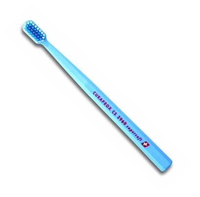 Curaprox CS 3960 super soft – очень мягкая, толщина щетины – 0,12 мм, количество активных атравматичных Curen щетинок – 3960, для лучшей очистки вертикальных поверхностей зубов создано компактное поле широких щетинок, головка расположена под углом 45°, защитный чехол.