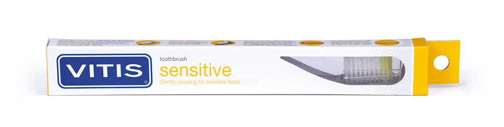 Высококачественная щетина и продуманный дизайн зубной щетки VITIS SENSITIVE дают возможность особенно мягко и в тоже время тщательно удалить налет. Для людей с чувствительными деснами компания DENTAID предлагает специальную мягкую щетку с маленькой головкой VITIS GINGIVAL, а для еще более бережной чистки — VITIS ULTRASOFT.